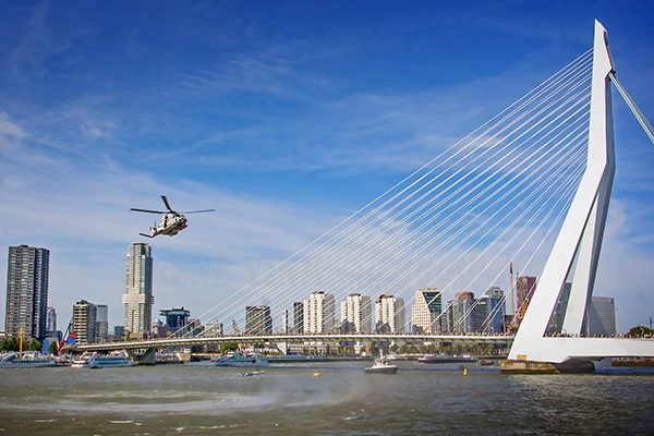 The aim for me was to go shoot the Royal Netherlands Navy NH-90NFH and the brand new Dutch Coast Guard AW189 helicopter displays over the water and with a stunning backdrop of the Rotterdam skyline. Everything else considering other activities was just a bonus or something I actively ignored. The weather played ball with sunny spells all day and two different displays of the NH-90, one at the end of the morning and the second in the afternoon. The first was focussed on displaying the dipping of a sonar buoy from a hover where the afternoon display saw a bright day-glow red practice torpedo drop. Other than that the crew dressed up the display with many beautiful passes with the high-rise buildings and the famous Erasmus bridge as a backdrop. The Coast Guard chopper stayed away from the backdrop a bit more but showed off an injured person from a boat.